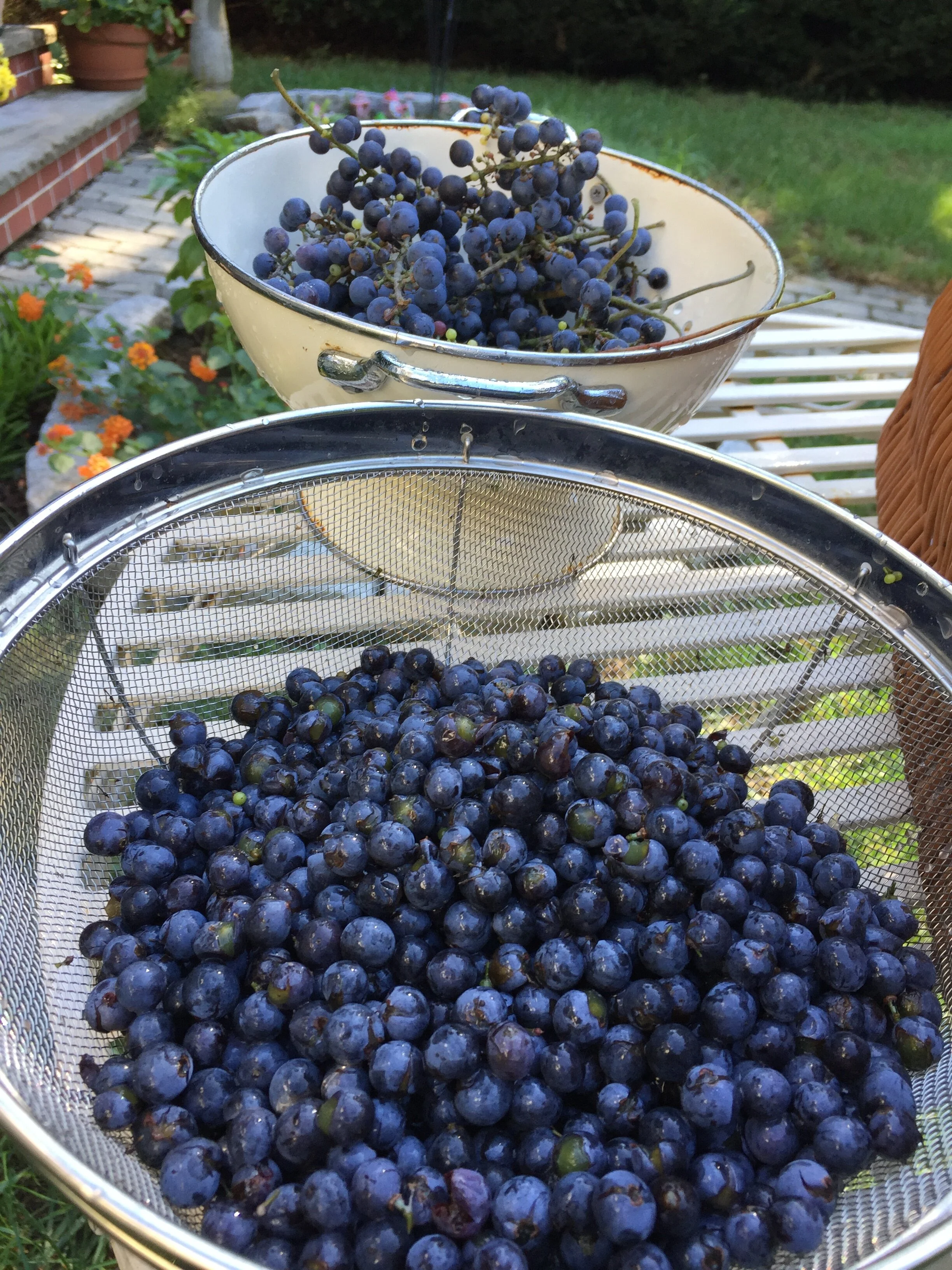 It takes time and patience and just the right ingredients to make a good jam. Here you see boiling grapes with brown sugar.